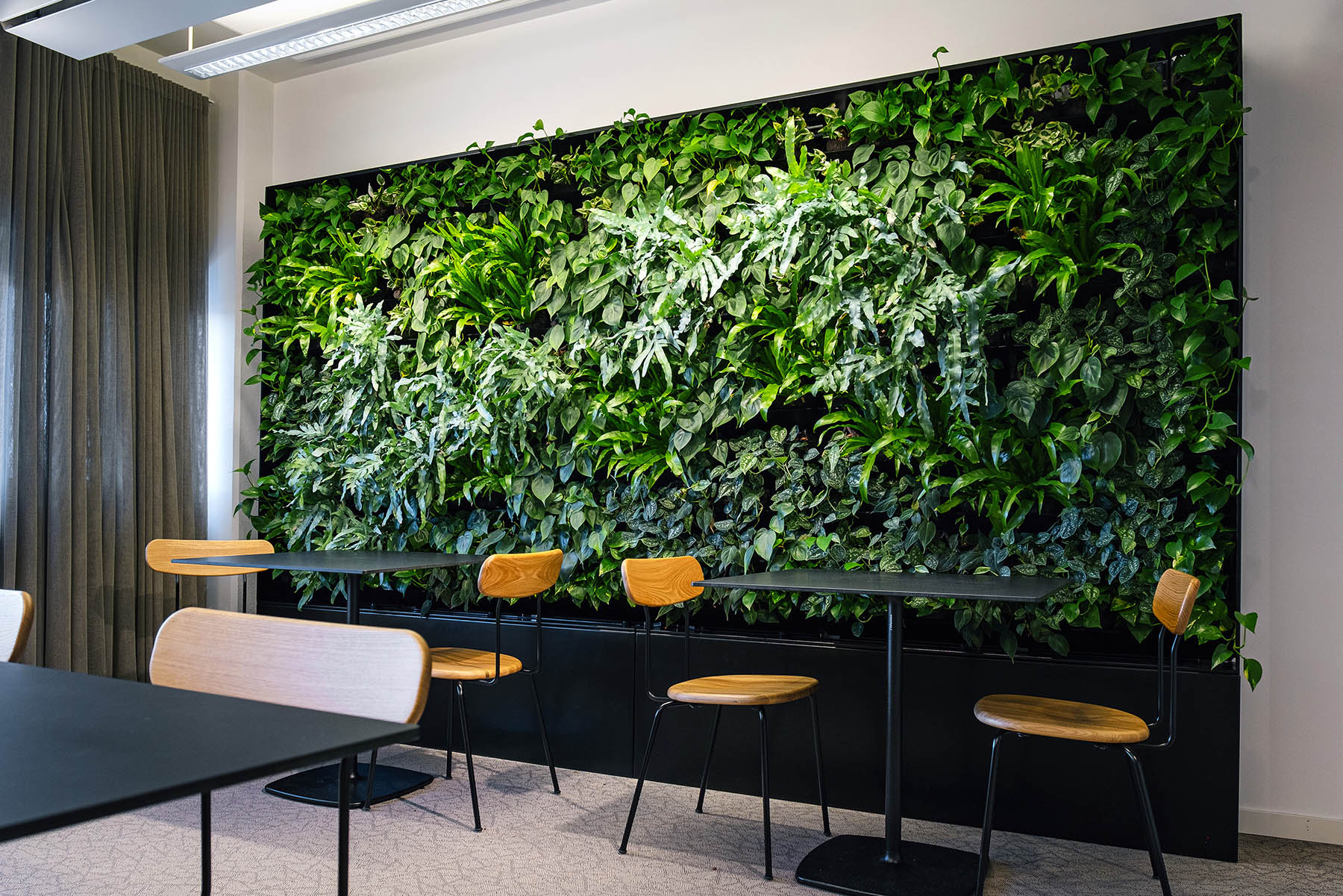 Sisätiloissa viherseinistämme on moneksi; tilanjakajaksi, kulunohjaajaksi ja tunnelman